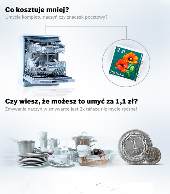 *1. Obliczenia dotyczące zużycia wody, energii i detergentów bazują na badaniach: Prof. Dr Rainer Stamminger Study, (2007) Washing-up Behaviour and Techniques in Europe. Hauswirtschaft und Wissenschaft (University of Bonn, Institut für Landtechnik, Section Household and Appliance Technology)